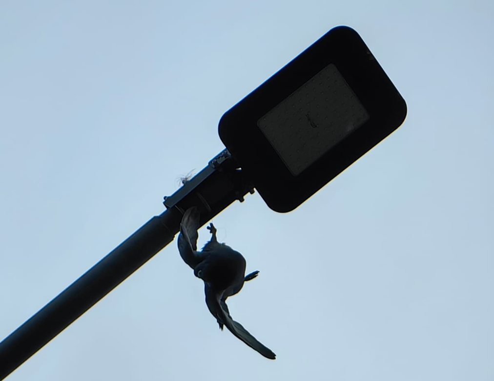 Воскресенье, 27 апреля, 15.37 В Екатеринбурге спасли голубя, висевшего вниз головой на верхушке фонаря в парке