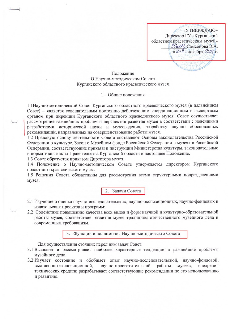 Несколько слов о Положении о Методическом совете Курганского областного краеведческого музея: