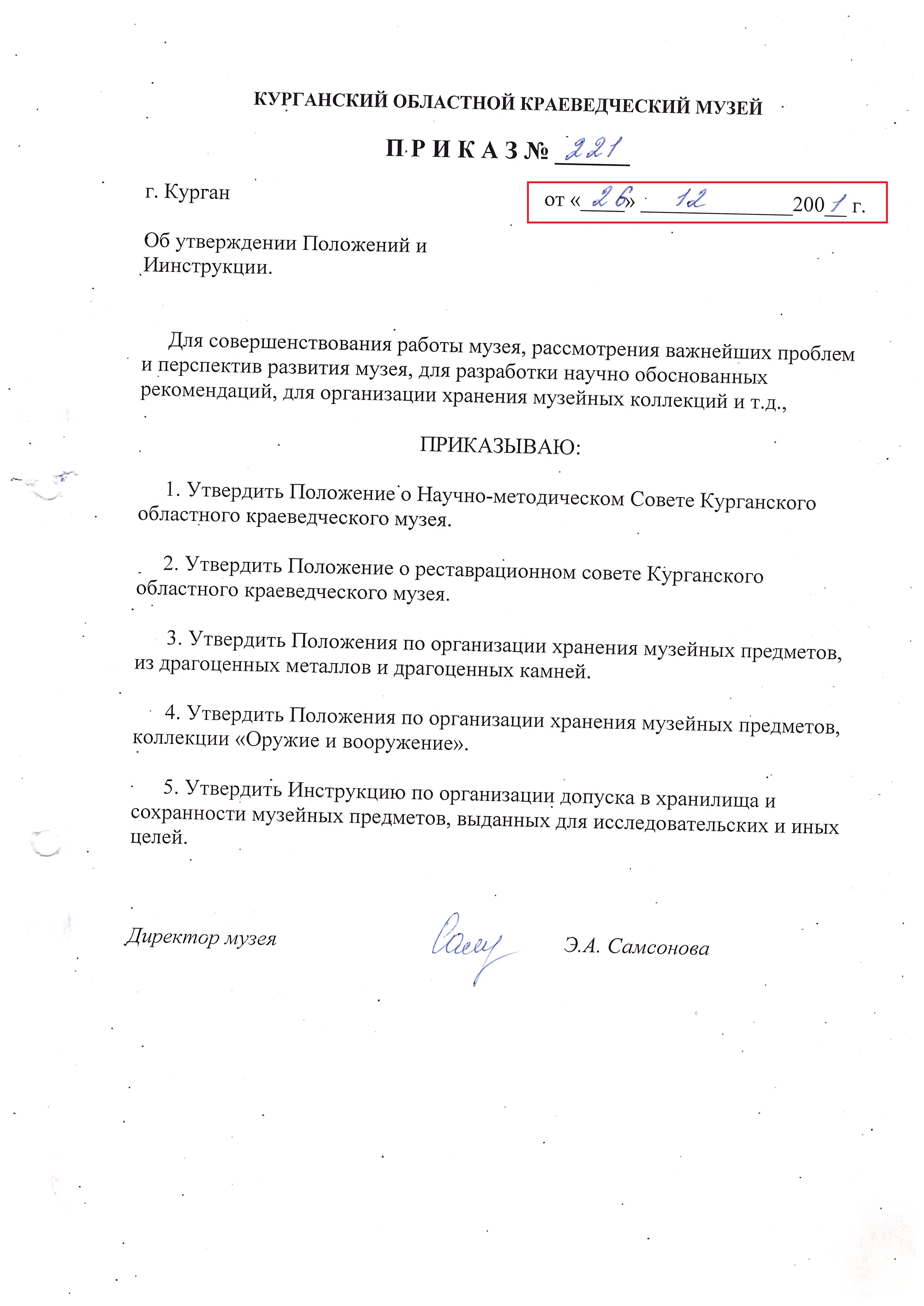 2) Представленные документы вызывают не только вопросы о профессиональной пригодности Директора Курганского областного краеведческого музея Эльвиры Самсоновой, но и руководящих и ответственных сотрудников Управления культуры.