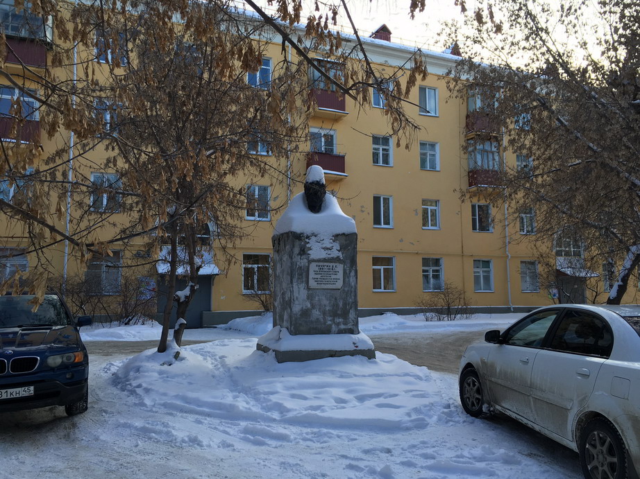 Аналогичная картина у памятника герою гражданской войны Дмитрия Пичугина на улице Коли Мякотина (о памятнике можно узнать на историческом сайте города - http://kurgan.pro/okn/n075/).