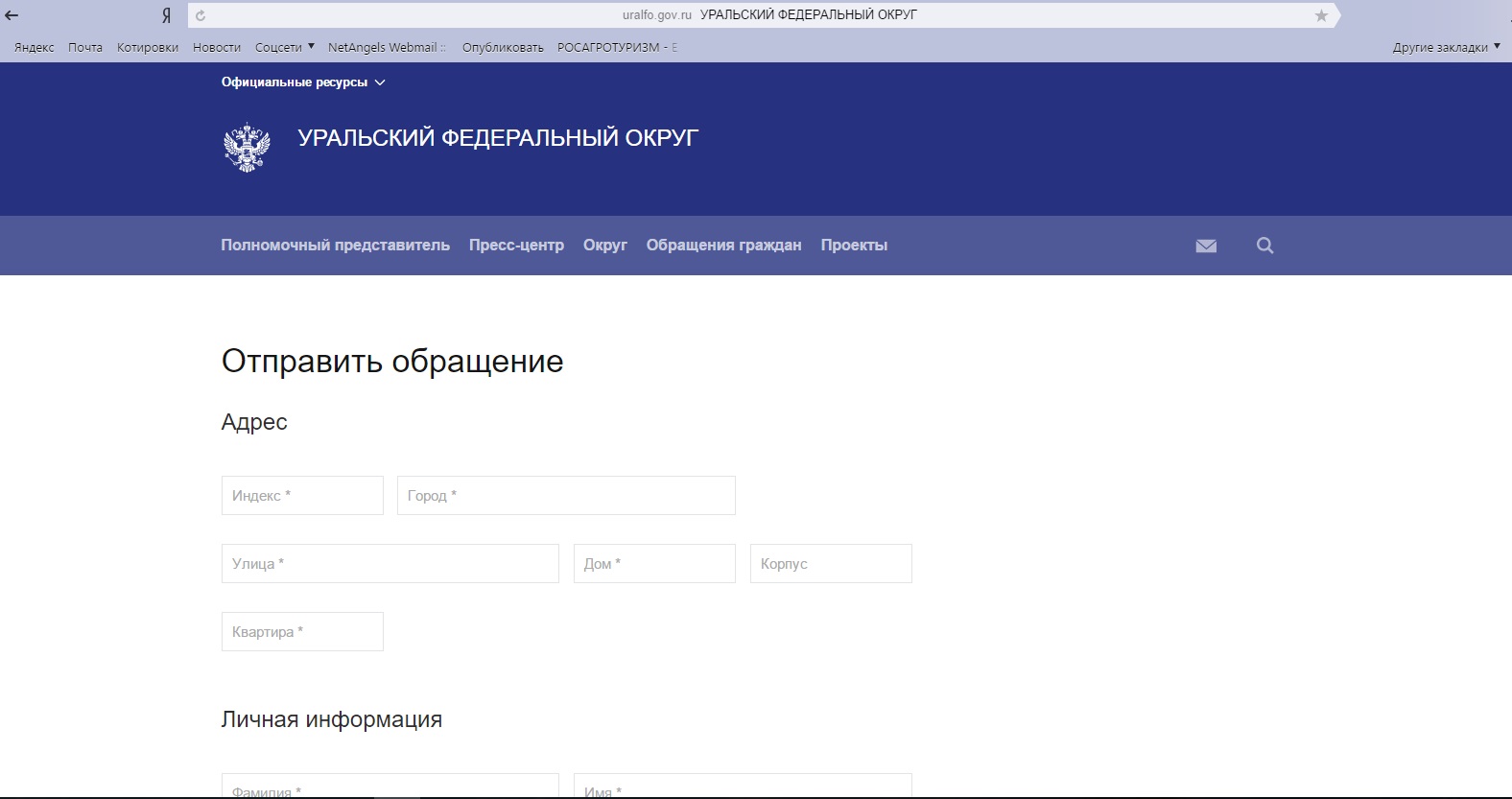 Так как удалось на сайте полпреда добиться открытия электронной приемной («Если гражданин не идет к «человеку труда», то человек труда придет к гражданину...»), то приведенное выше обращение мной направлено Полномочному представителю Президента России в Уральском федеральном округе в электронной форме. Видимо, в полпредстве не обратили внимания на мою публикацию об образе Урала, значит, стоит вопрос конкретизировать и формализовать. Есть такая технология – письменные запросы и обращения. Ей и будем пользоваться!