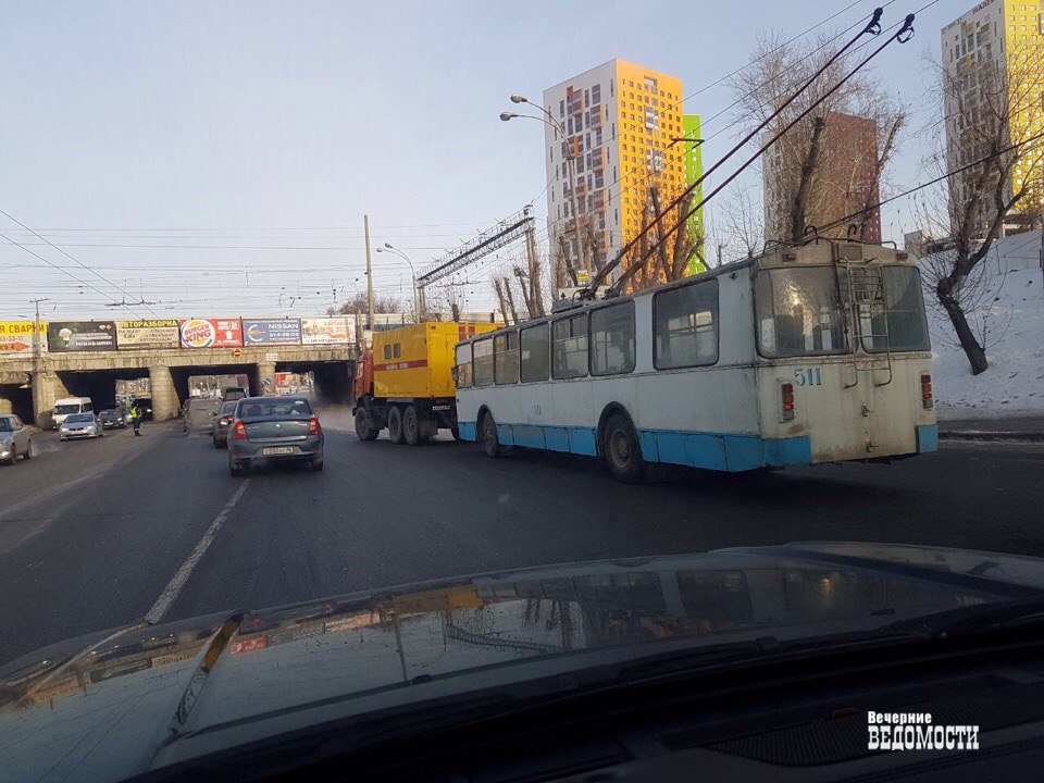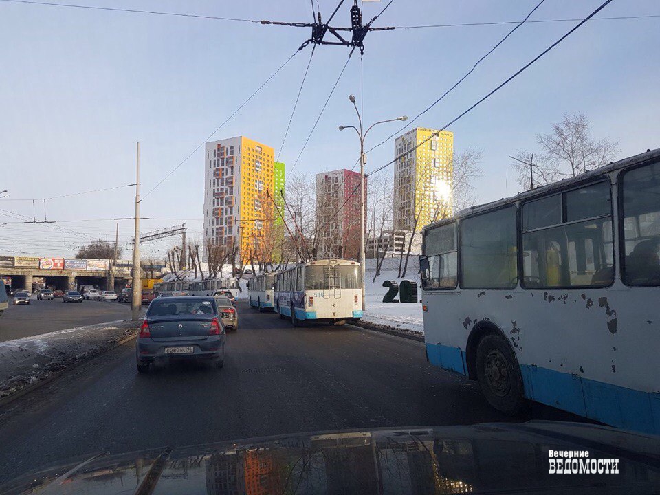 В Екатеринбурге парализовано движение троллейбусов в сторону Уралмаша
