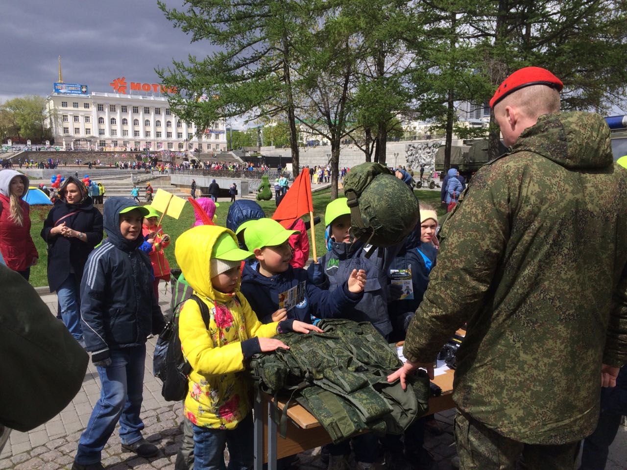 Сегодня, 1 июня, в День защиты детей, военные полицейские и юнармейцы познакомили юных жителей Екатеринбурга с экипировкой и спецсредствами, используемыми подразделениями военной полиции в повседневной деятельности.