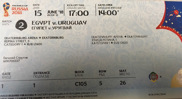 Житель Нижнего Тагила приехал вчера в Екатеринбург на матч Египет — Уругвай, но не нашёл своего места на трибуне. Оказалось, что такого места не существует вовсе, а в общей сложности, по подсчётам потерпевшего, на трибуне отсутствуют почти 200 мест, заявленных в билетах.