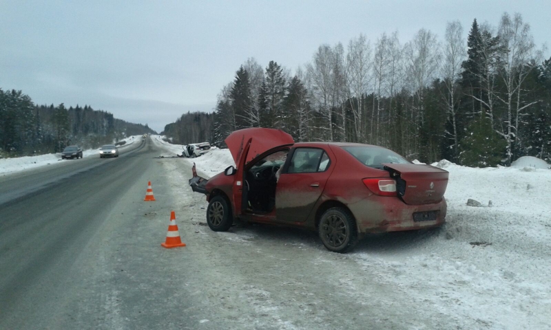По предварительным данным, водитель «Рено-Логан» 1989 года рождения двигался к Екатеринбургу. При обгоне, возвращаясь на свою полосу, он не справился с управлением, и его автомобиль вынесло на полосу встречного движения. На встречке «Рено» столкнулся с «Киа-Рио» под управлением мужчины 1969 года рождения.