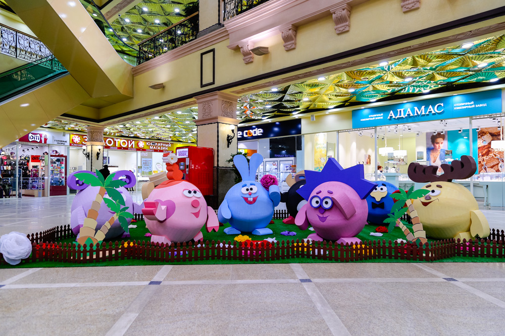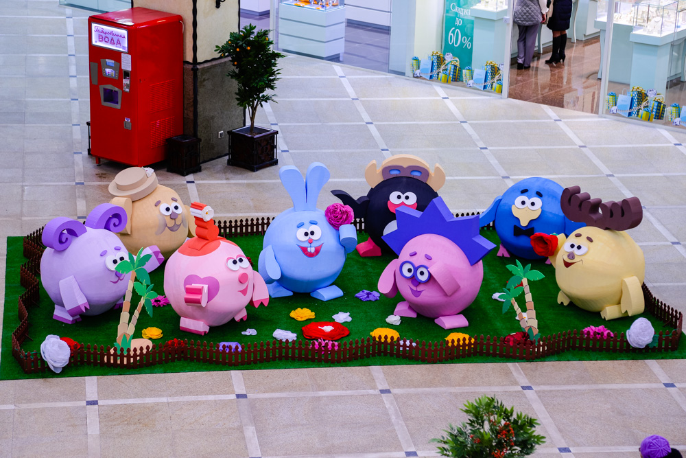 Сегодня, 17 марта, в день премьеры фильма «Смешарики. Легенда о золотом драконе», в екатеринбургском Центральном универмаге «Пассаж» открылась специальная детская площадка. Уральские художники и несколько детских студий создали в торговом центре весеннюю полянку с огромными Смешариками диаметром до 1,5 метра.