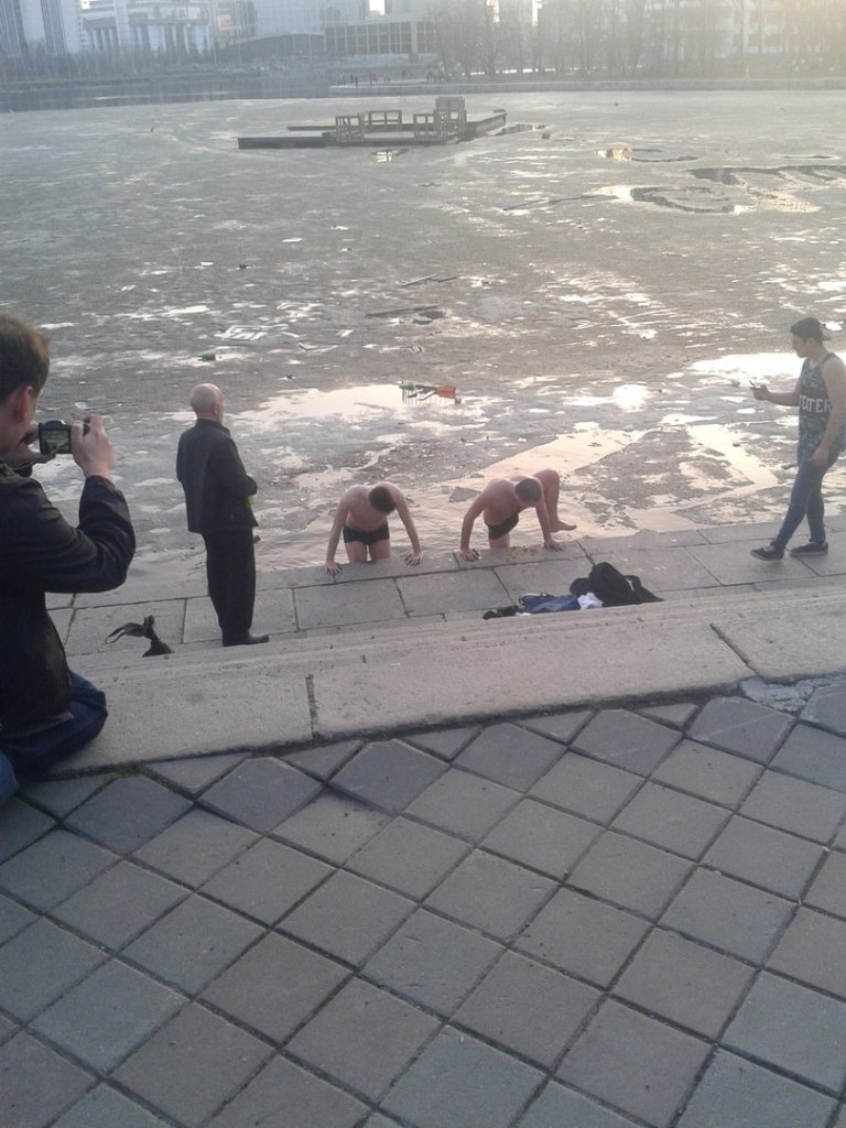 Екатеринбуржцы открыли купальный сезон в акватории городского пруда в самом центре уральской столицы – на Плотинке и напротив Дворца игровых видов спорта. Горожан не испугала холодная вода в Исети, температура которой сейчас составляет всего около трех градусов. Фотографии и видео купающихся «моржей» горожане размещают в соцсетях. Зачем молодые люди полезли в апреле купаться в ледяную реку, неизвестно.