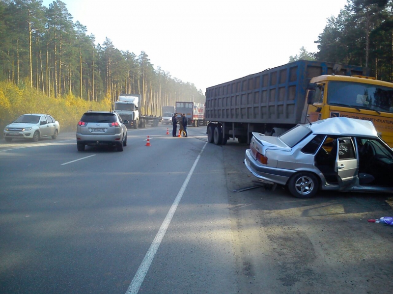 Сегодня днем, 27 сентября, на 25-м километре ЕКАД произошло жуткое ДТП с летальным исходом. Как сообщает пресс-служба ГУ МВД России по Свердловской области, автомобиль ВАЗ-2115, который двигался со стороны Берёзовского в сторону Верхней Пышмы, при развороте с правой обочины столкнулся с КамАЗом. При этом грузовик подмял под себя отечественную легковушку.