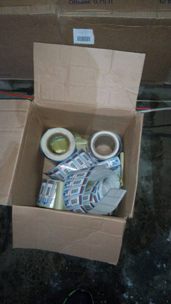 Кроме этого, в ходе осмотра силовики нашли шесть 200-литровых пластиковых ёмкостей с этиловым спиртом, 12 картонных коробок с укупорочными крышками, 3 бобины с акцизными знаками «Финская», «Талка», «Серебро», а также 2 бобины с акцизными знаками для алкогольной продукции с признаками подделки.