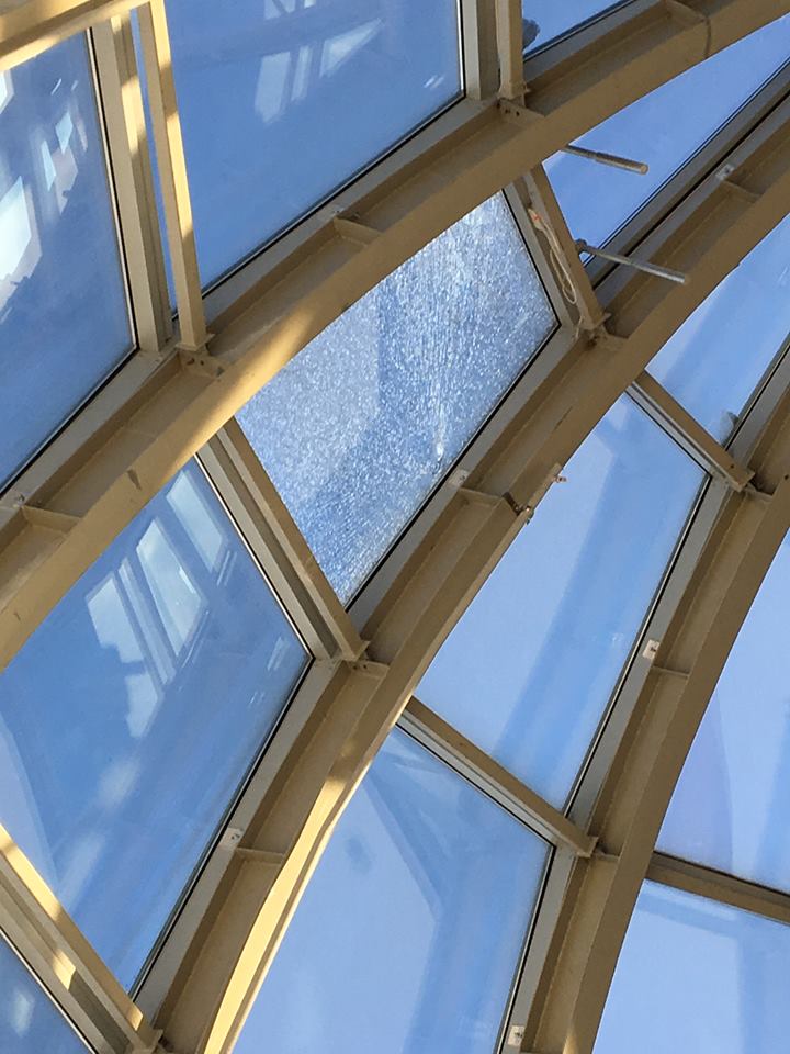 В Управлении зданиями областного правительства сообщили, что в данный момент специалисты, которые обслуживают здание, и подрядчик, возводивший здание Заксобрания, изучают повреждение стекла одной из секций купола.