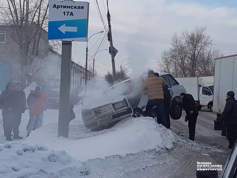 В Екатеринбурге после столкновения с «ГАЗелью» «четверка» улетела в сугроб (ФОТО, ВИДЕО)