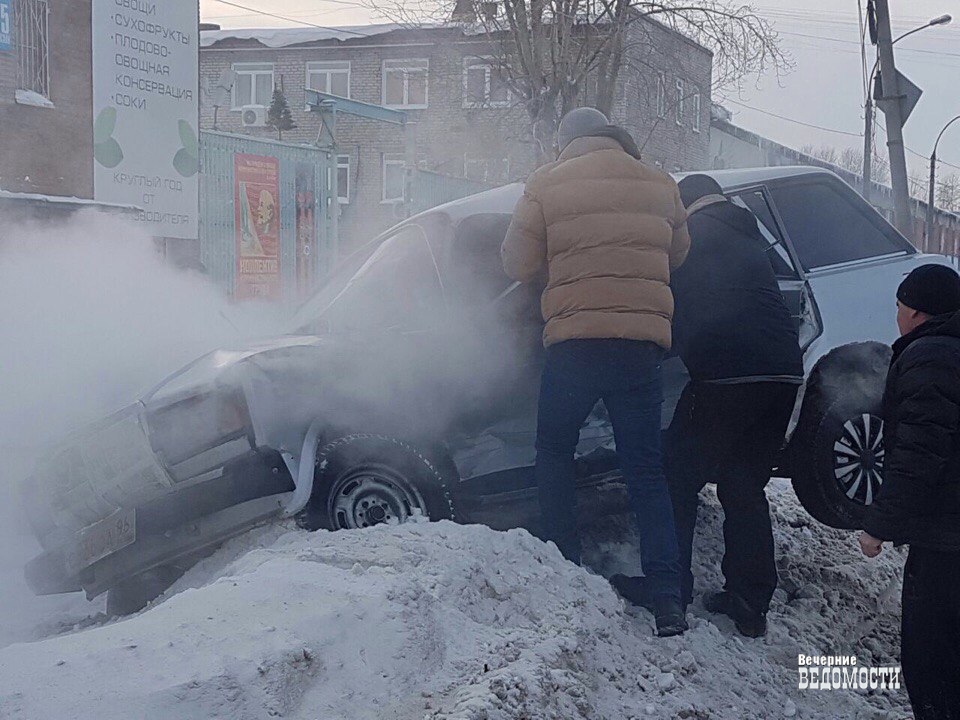 В результате столкновения транспортные средства раскидало по разным сторонам – «четверку» отбросило в сугроб, а «ГАЗель» оказалась на встречной полосе. Автомобили получили механические повреждения, ВАЗ задымился, на месте ДТП работают пожарные.