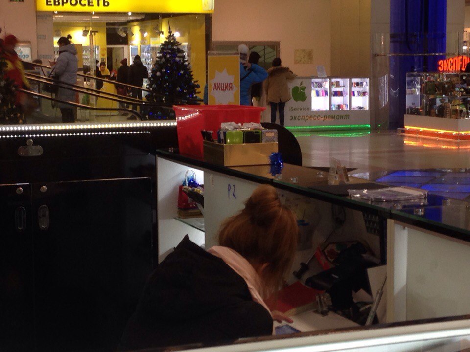 В Екатеринбурге сотрудники магазинов в ТРК «Парк Хаус», расположенных на первом этаже, вынуждены работать в шапках и пуховиках. Больше всего страдают от холода продавцы торговых точек, расположенных недалеко от входа: верхнюю одежду они практически не снимают, согреваясь горячим чаем из термоса.