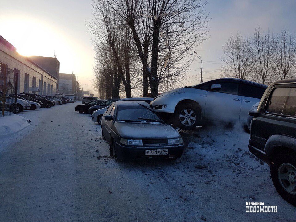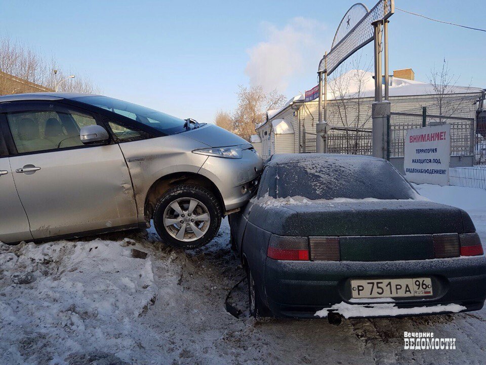 Минивэн вылетел на парковку в Екатеринбурге из-за наледи и колеи (ФОТО)