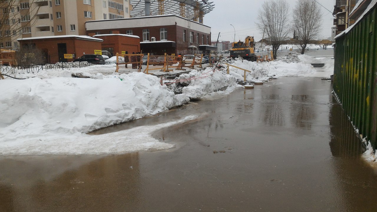 В Екатеринбурге строители затопили дворы на улице Крылова