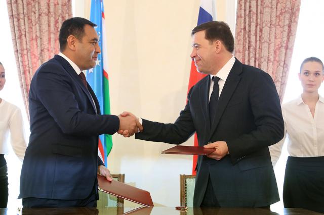 Встреча Евгения Куйвашева и хокима (главы правительства) Наманганской области Республики Узбекистан Хайрулло Бозарова и уполномоченного представителя президента Узбекистана Акмала Камалова состоялась сегодня, 27 марта. Стороны обсудили возможности двустороннего партнерства и подписали протокол о намерениях об установлении сотрудничества между регионами.