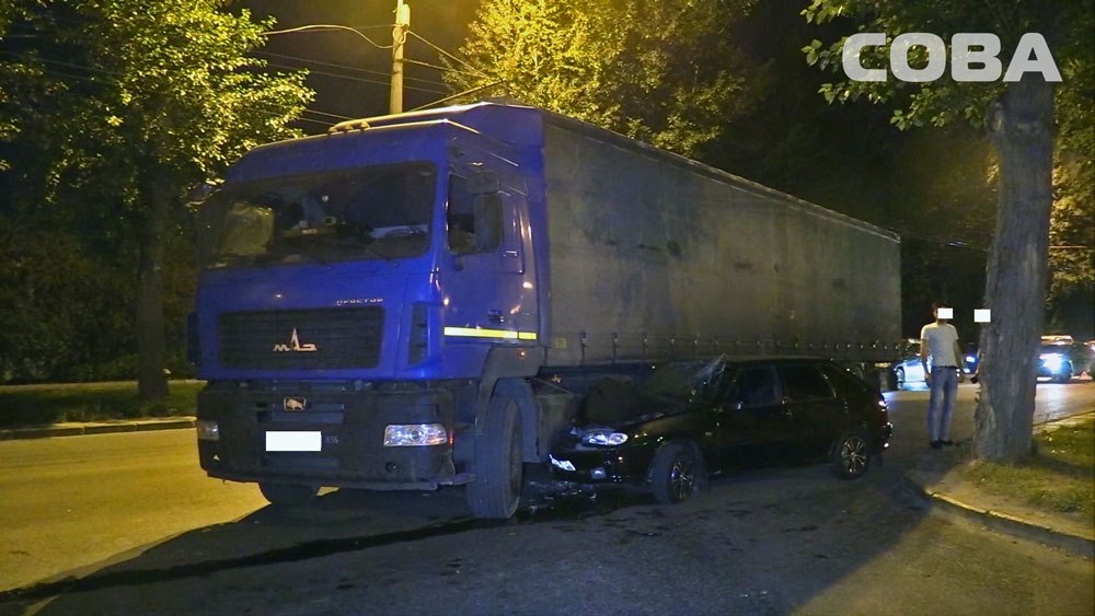 Накануне вечером на проспекте Космонавтов в Екатеринбурге столкнулись большегруз МАЗ и автомобиль LADA, сообщает пресс-группа службы спасения «СОВА».