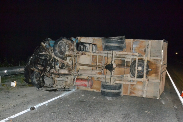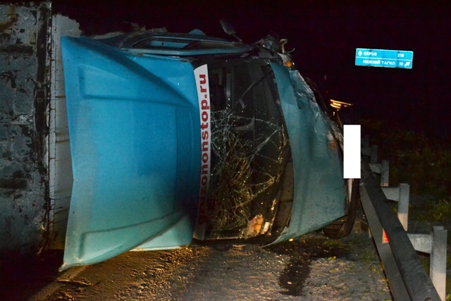 Накануне вечером на 133-м км Серовского тракта произошло ДТП — водитель автомобиля ГАЗ-33021 не справился с управлением, выехал на встречную полосу, где столкнулся с Toyota RAV 4 и Chevrolet Klan, после чего опрокинулся на бок.