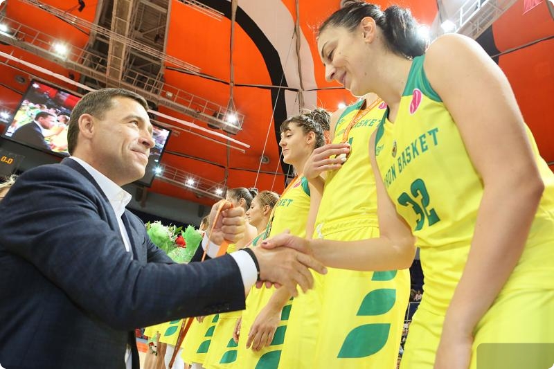 Глава Свердловской области Евгений Куйвашев и генеральный директор УГМК Андрей Козицын накануне посетили финальные игры международного турнира «Кубок УГМК», которые проходили во Дворце игровых видов спорта в Екатеринбурге.
