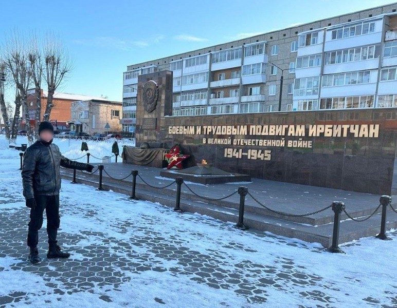 Как сообщили в МВД России по Свердловской области, вечером 11 января мужчина прикурил сигарету от Вечного огня, установленного у монументальной композиции «Боевым и трудовым подвигам ирбитчан в Великой Отечественной войне 1941–1945 годов». По данным следствия, он сознательно поднялся на постамент памятника и в присутствии свидетелей воспользовался пламенем Вечного огня, после чего покинул территорию.