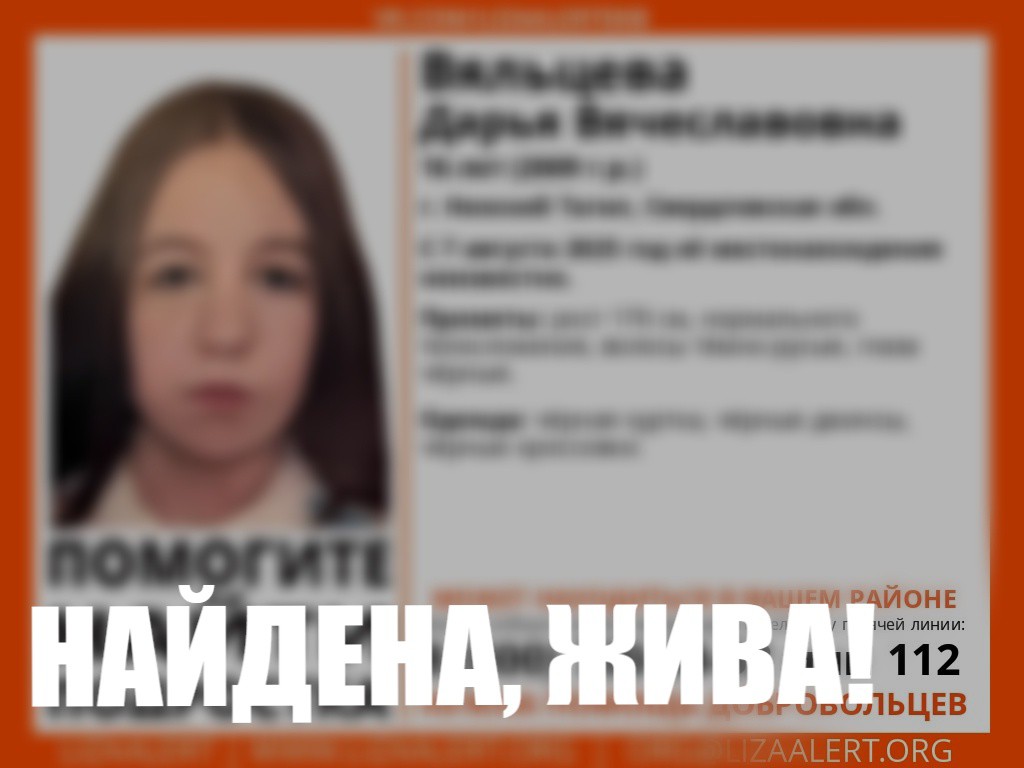Всех, кто располагает информацией о местонахождении Дарьи Вяльцевой, просят сообщить об этом в полицию или в отряд «ЛизаАлерт» по номеру 8(953)053-04-83.