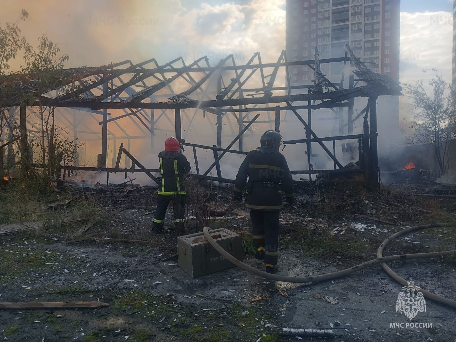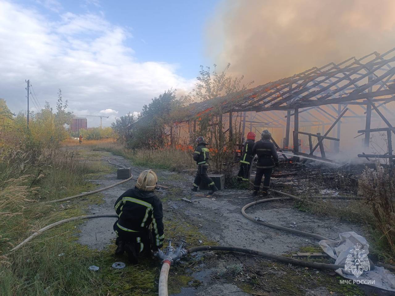 Суббота, 13 сентября, 17.55 В Екатеринбурге пожар площадью 450 кв. м ликвидирован в заброшенном здании на Маневровой