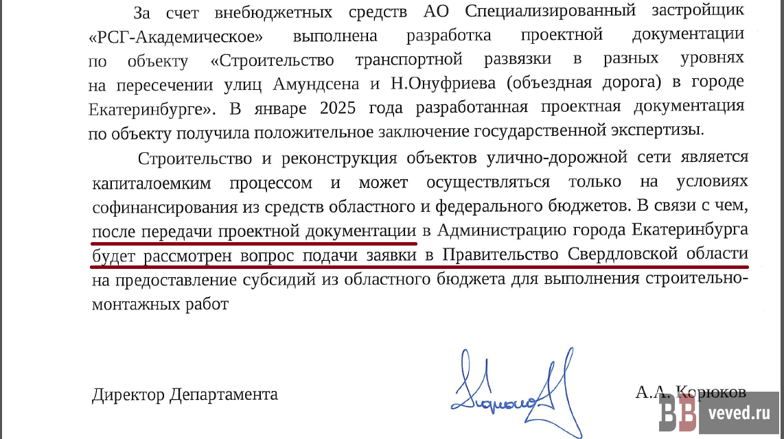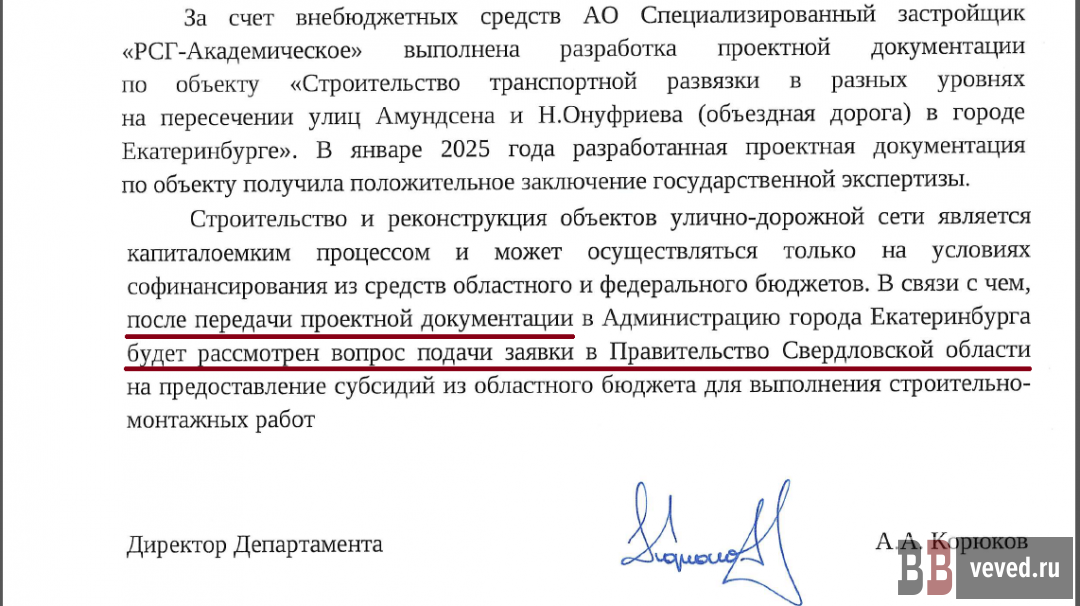 А что с развязкой на втором выезде из Академического, о выдаче положительного заключения на проект которой в конце января сообщила Главгосэкспертиза Свердловской области?
