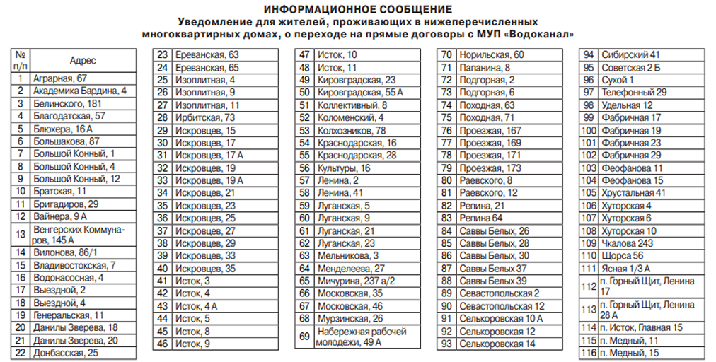 Две управляющие компании отвечали за обслуживание 224 многоквартирных домов. После расторжения соглашений «Водоканал» будет взаимодействовать с собственниками напрямую и займётся поставкой холодной воды и водоотведением.