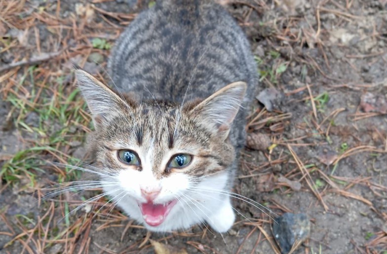 Один-одинёшенек и под открытым небом остался маленький котёнок в городе Сысерть. Сейчас он живёт ан автобазе, откуда всех его братьев и сестёр разобрали.