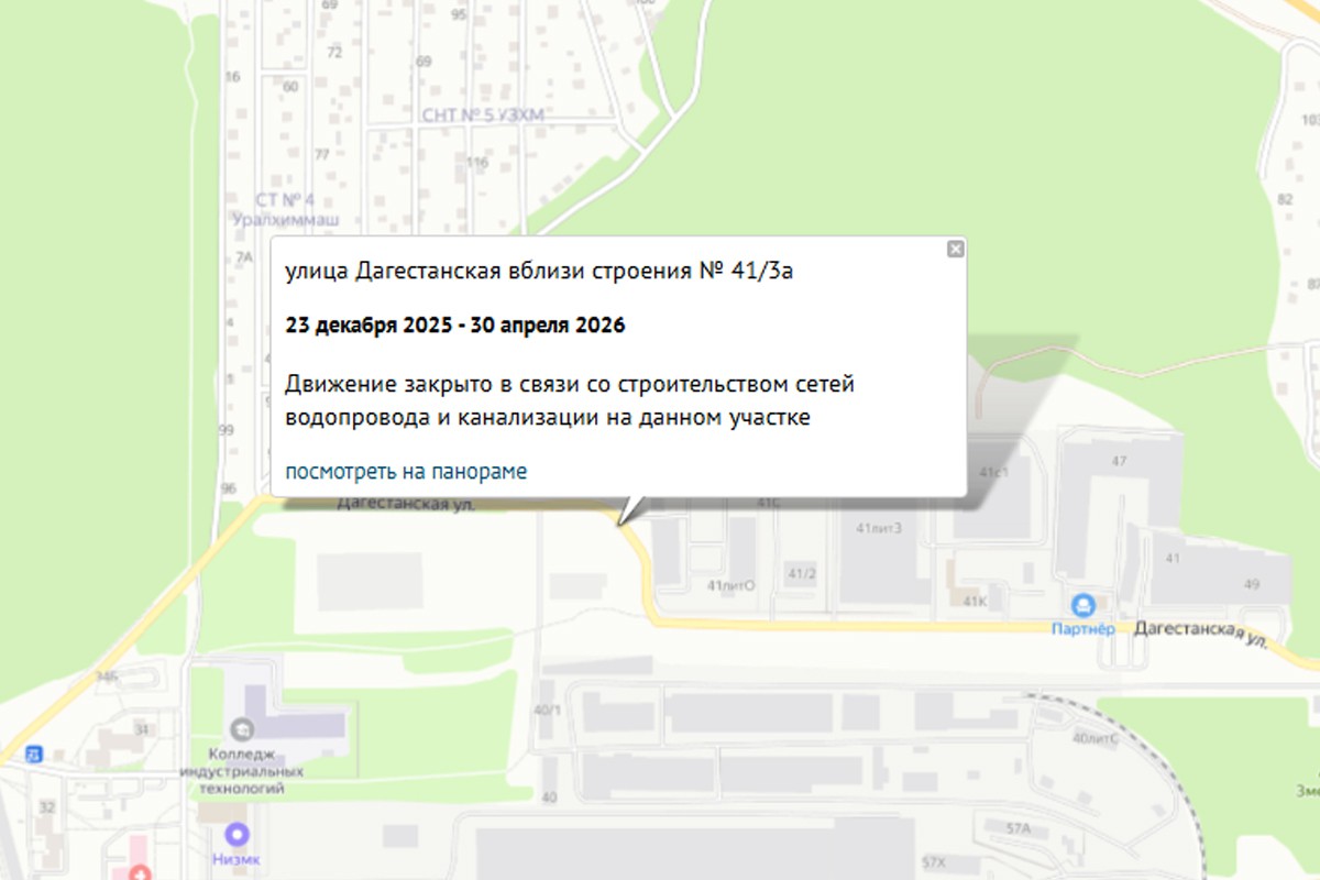 В Екатеринбурге до 30 апреля 2026 года ограничат движение по улице Дагестанской вблизи строения № 41/3.