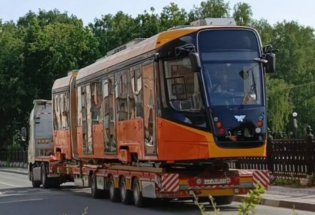 Две из пяти секций будущего трамвая в ходе транспортировки в Екатеринбург. Фото: УКВЗ