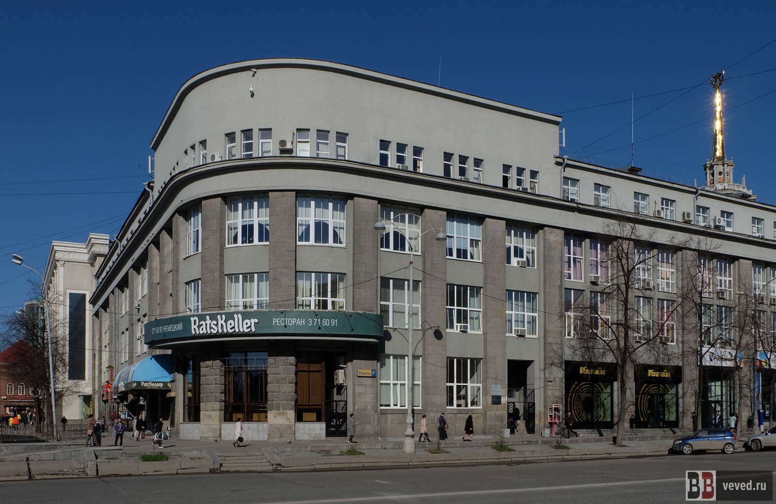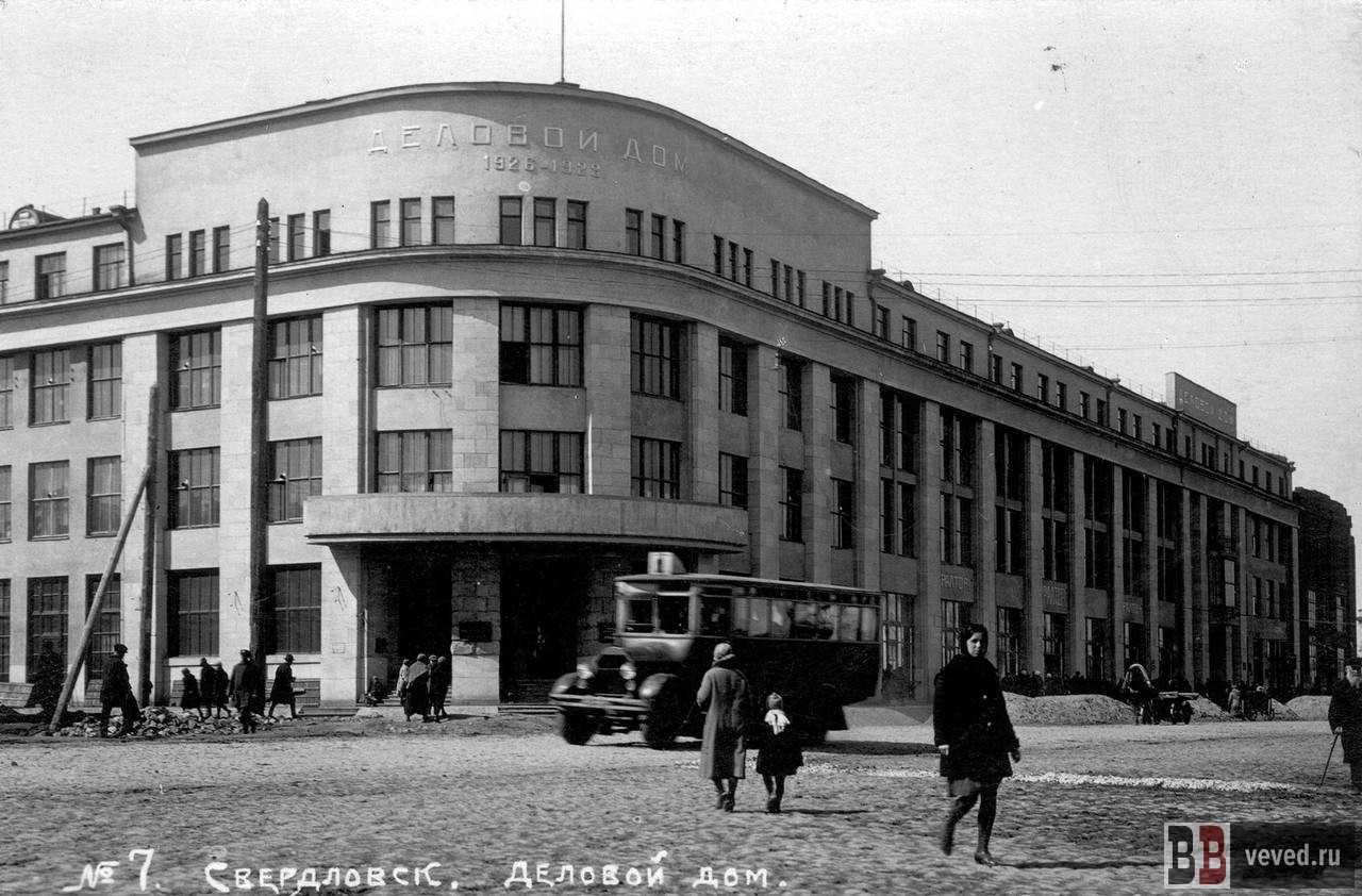 Здание по адресу 8 марта (на то время — Троцкого), 8б проектировалось в 1925 году для Промбанка, но после завершения строительства в 1928 году было передано другим учреждениям и получило название Деловой дом. Спустя некоторое время, после завершения строительства в этом же квартале здания Горсовета (ныне — администрация и гордумы Екатеринбурга) было объединено с ним. Сейчас в здании Делового дома находятся ряд структурных подразделений мэрии — департамент потребительского рынка и услуг, департамент землепользования, департамент транспорта и развития дорожно-транспортной инфраструктуры и другие.