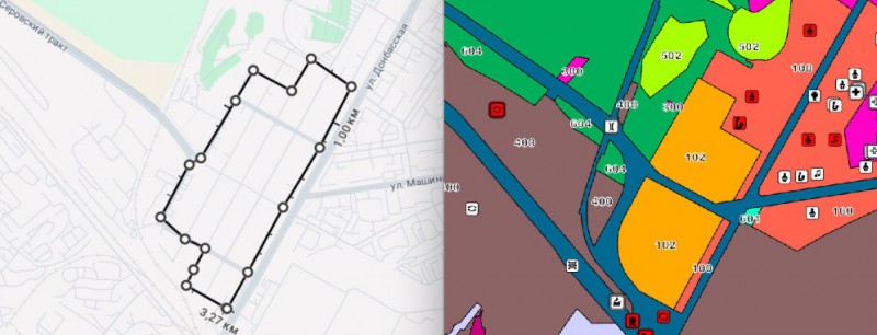 Слева — территория ТОС «Новоэкскаваторный посёлок» (вся – частный сектор), справа видно, какую часть хотят исключить из зоны 102