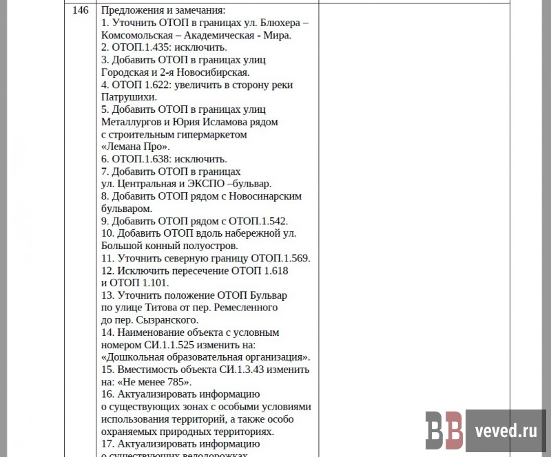 При этом предложения другого участника в количестве 39, не касающиеся добавления ОТОП, а касающиеся только их исключения и уточнения границ, мэрия поддержала в полном объёме. В частности, из ОТОП одобрили исключение зелёной зоны по улице Юлиуса Фучика у Южного парка.