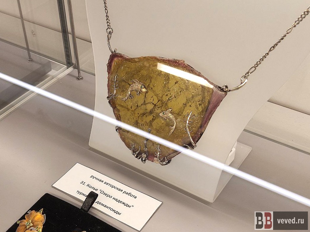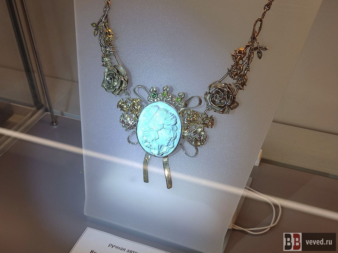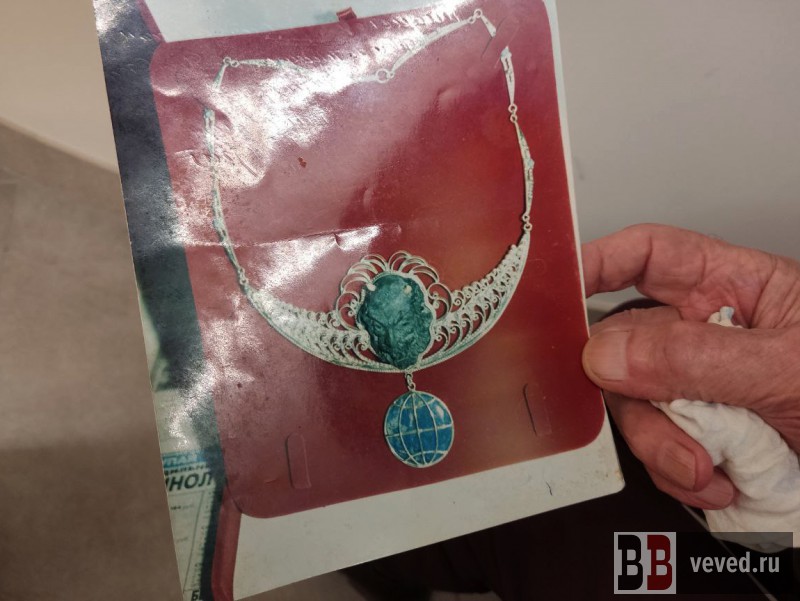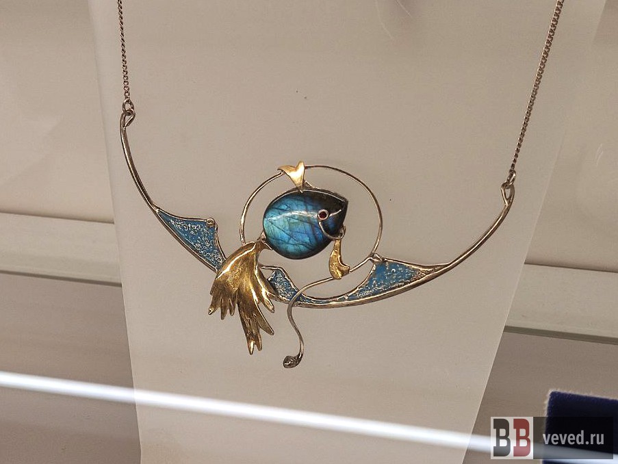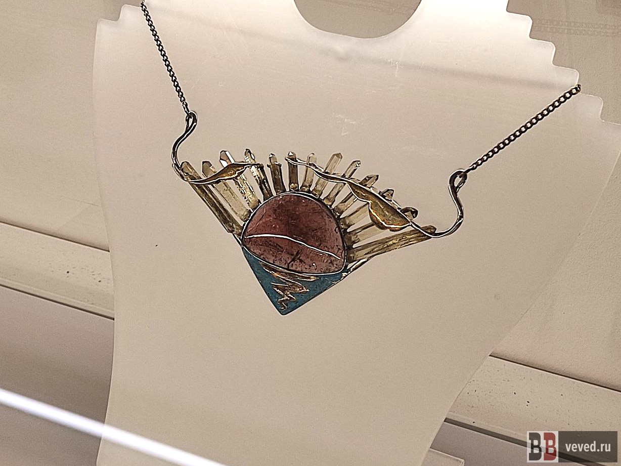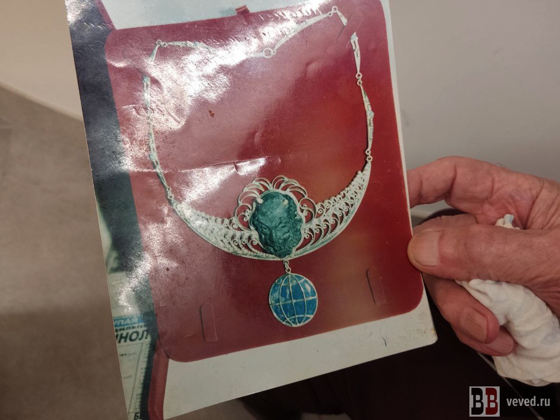 К сожалению, увидеть эту работу можно только на фотографии. По словам Анатолия Панфилова, её разбил художник в Москве. Повторять ожерелье мастер не стал. Объяснил, что все свои работы он создаëт в единственном экземпляре.