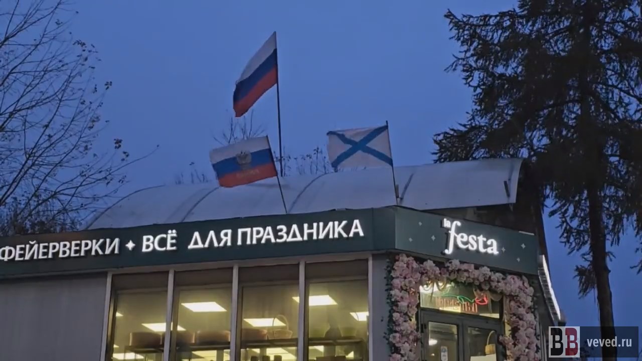 На фоне сопротивления решению властей о выносе павильона «Цветы от Аллы» его владельцы разместили на нём флаги. За последние месяцы, что длится судебная тяжба, на строении появились два флага с изображением государственного герба и надписью «Россия», один государственный флаг России, а также Андреевский флаг, который использует ВМФ России.