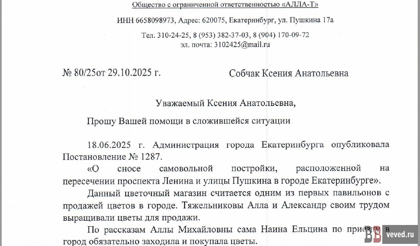 Напомним, сейчас в Екатеринбурге проводится значительное сокращение числа нестационарных торговых объектов, в рамках инициированной городскими властями «Реформы НТО». К слову, у Тяжельниковых в нескольких метрах от павильона «Цветы от Аллы» располагался НТО, где также продавали цветы, но его снесли в 2019 году, после чего на этом месте организовали ещё один пешеходный переход через проспект Ленина.