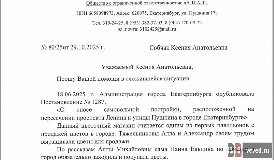 В письме Собчак Лушников указывает на то, что цветы в этом магазине покупала Наина Ельцина.