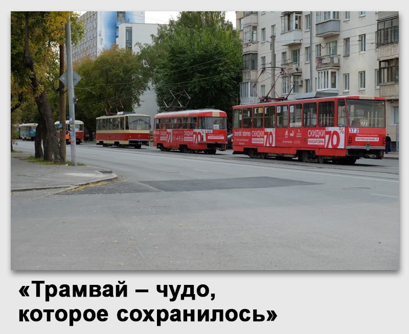 А.К.: Конечно. У нас сохранилась и даже развивается трамвайная сеть, созданная ещё в советские годы. Она сохранилась почти полностью и даже проросла новыми линиями. Это большая редкость: во многих городах электротранспорт закрыли или урезали, а в Екатеринбурге он жив, причём находится не в самом плохом состоянии. Трамвай и троллейбус – это ценность, и можно завидовать нашему «чуду», которое сохранилось.